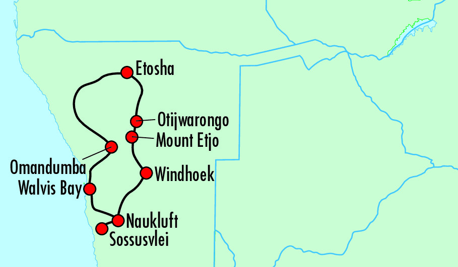 12. Tag Etosha - Otjiwarongo - WindhoekVia Tsumeb und Otavi geht es nach Otjiwarongo und weiter nach Windhoek. Ein Sundowner zum Hilltop bildet den Abschluss einer ebenso eindrücklichen wie wunderbaren Reise.